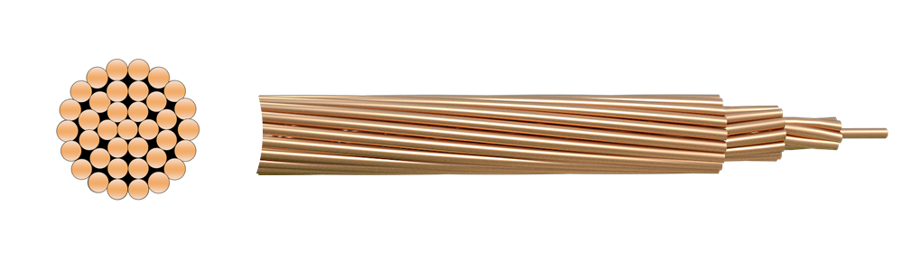 实心和绞合(AA 和 A 级)裸铜适用于架空输配电应用。灵活性更大的绞合导体(B 和 C 级)适用于电气结构中的非绝缘连接、跳线和接地。软拉铜为单一结构